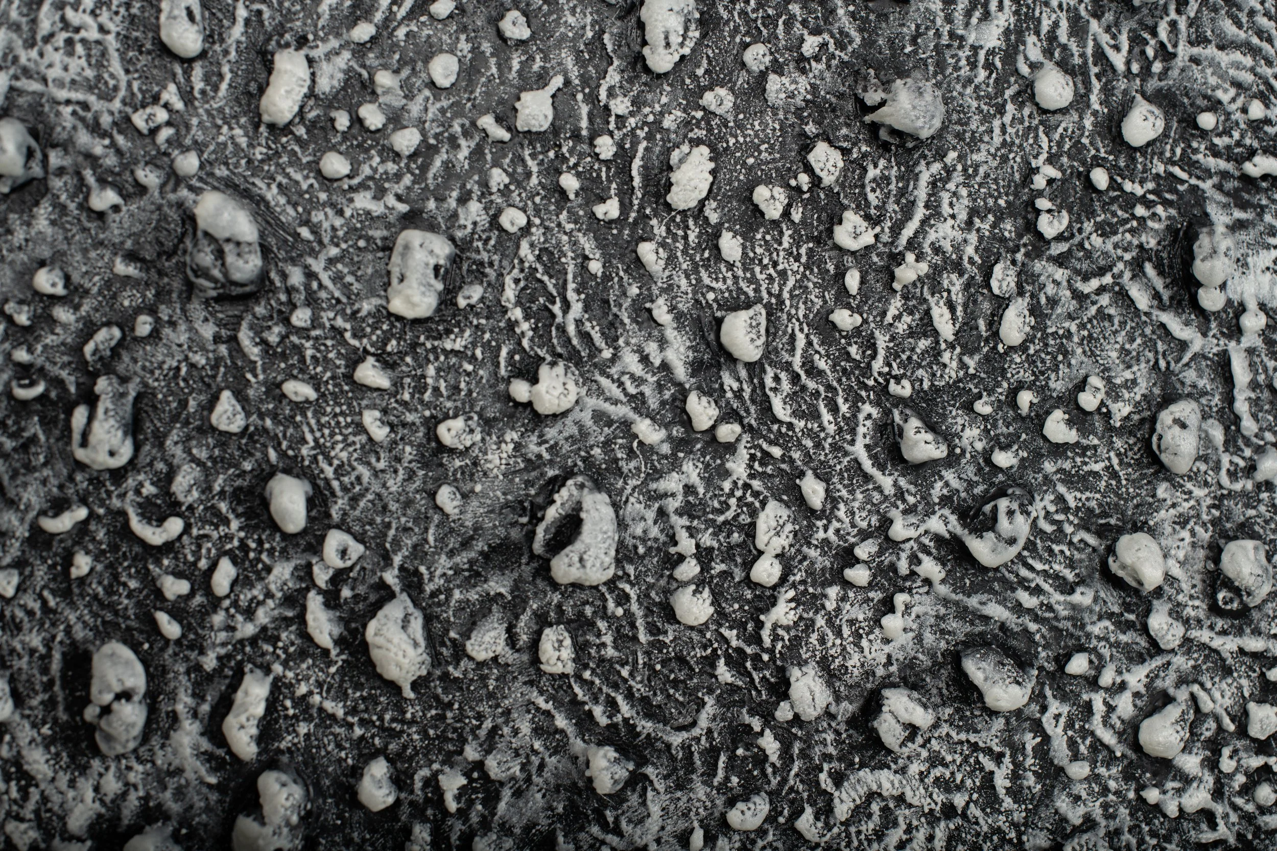 oil, ash, pigment stick & cold wax on repurposed canvas, 60” x 100”